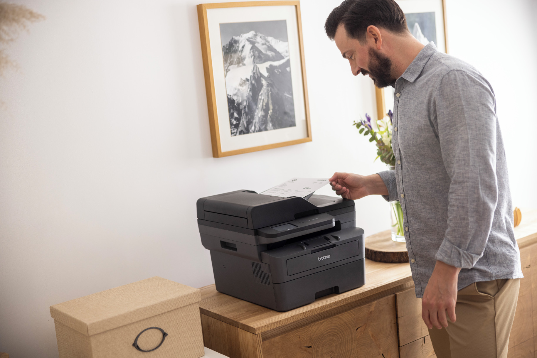 - Fast ethernet, 5GHz WiFi, USB, Brother Mobile Connect app